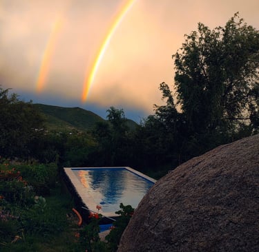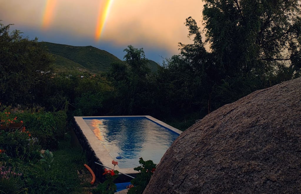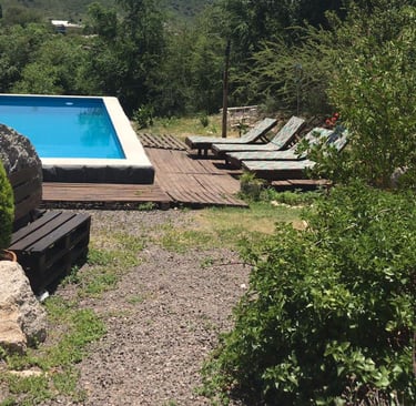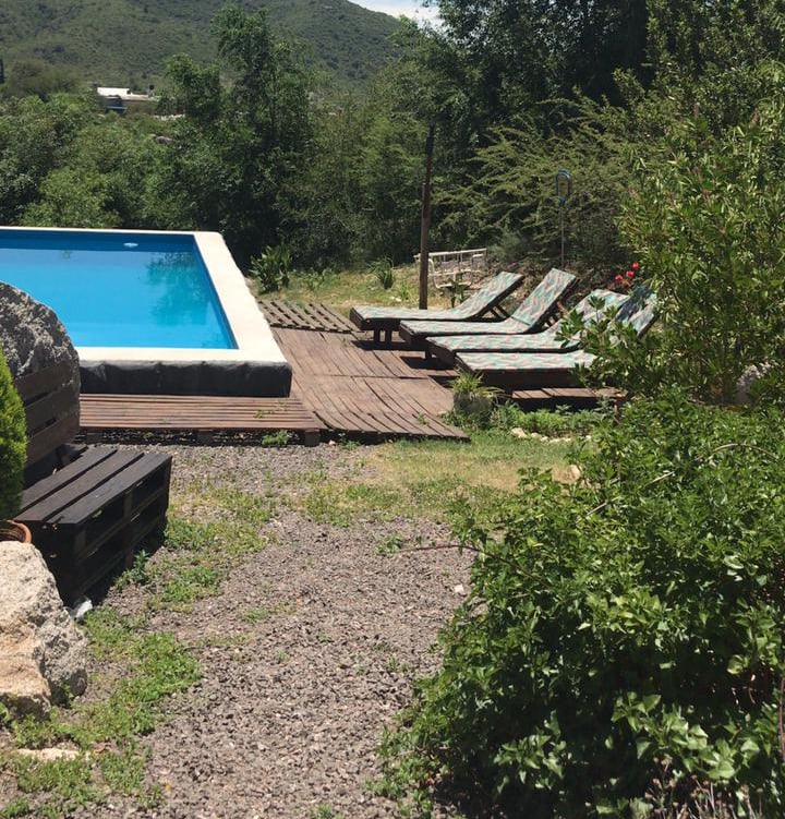 Cabaña con piscina y cochera privada, totalmente equipada. Cuenta con TV, Wi-Fi, vajilla completa y capacidad para 4 a 5 personas, con opción a incluir una persona adicional.